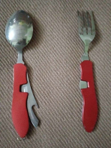Je suis très satisfait(e) de mon achat ; l'aspect du produit est vraiment agréable, il fonctionne bien, il est détachable et la taille des couverts est appropriée ; de plus, cette couleur rouge métallisé est magnifique. Il semble que ce soit un ensemble de couverts pliants de bonne qualité et je sais qu'il me durera longtemps. Une merveille.