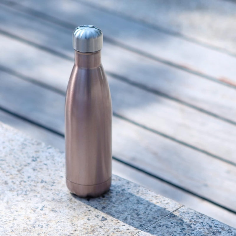 Cette gourde isotherme dorée en acier inoxydable 1 litre maintient vos cafés brûlants ou vos jus glacés pendant des heures.